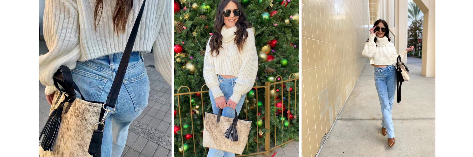 Exterior: Authentic hair-on cowhide front + durable leather back