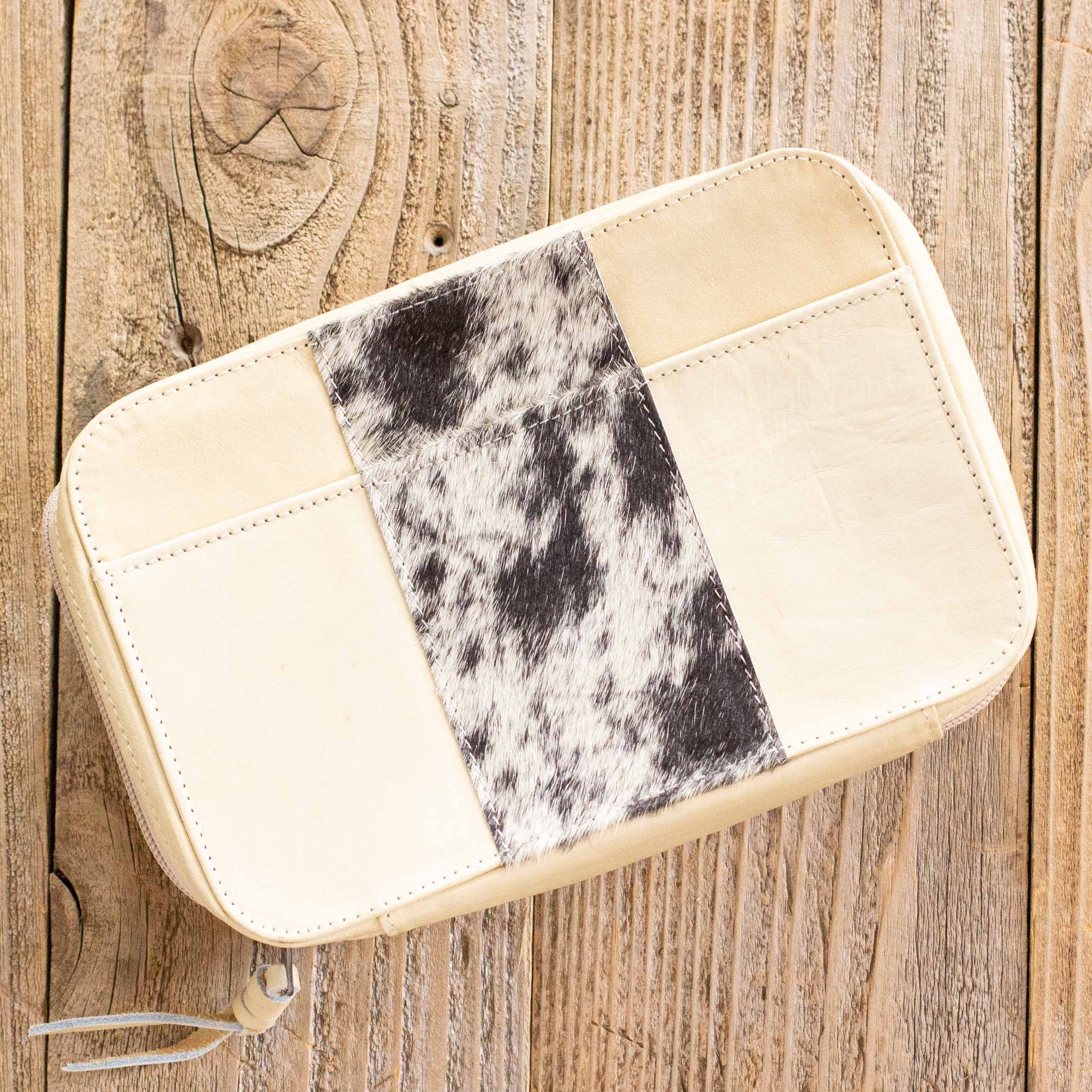 Crafted from high-quality leather with a striking cowhide accent on the front, the Crossbody Wallet offers a unique blend of modern design and timeless craftsmanship. Choose from four beautiful cowhide styles to match your personal taste. The wide YKK zipper opens ¾ of the way around the bag, making it easy to access everything inside.