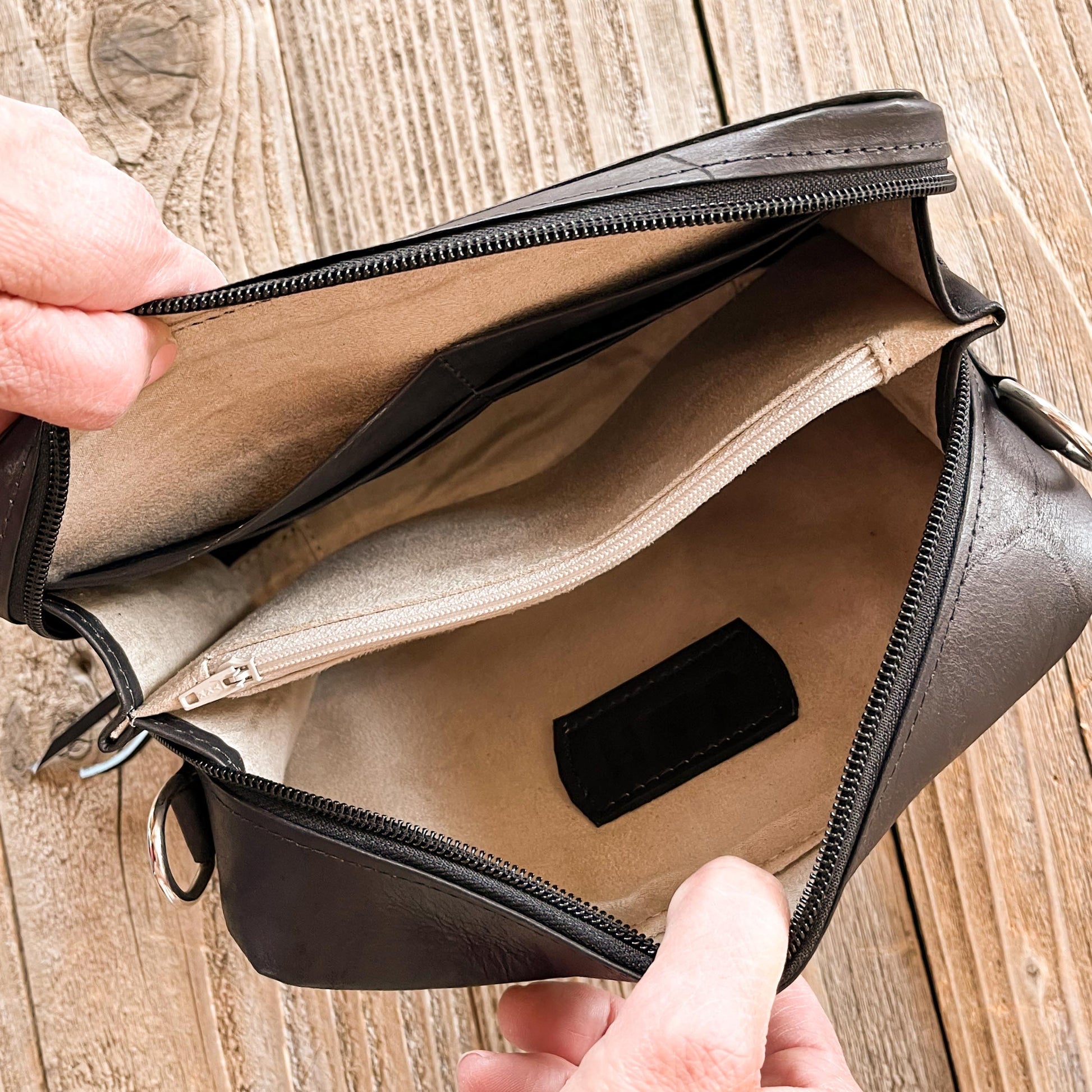 With its plush microsuede lining, six internal credit card slots, and a secure zip pocket, this wallet is ready to store your essentials. Plus, the front sleeve pocket is perfect for quickly grabbing your phone or other must-haves. You'll fall in love with its comfort, thanks to the detachable leather strap, adjustable for perfect crossbody wear.