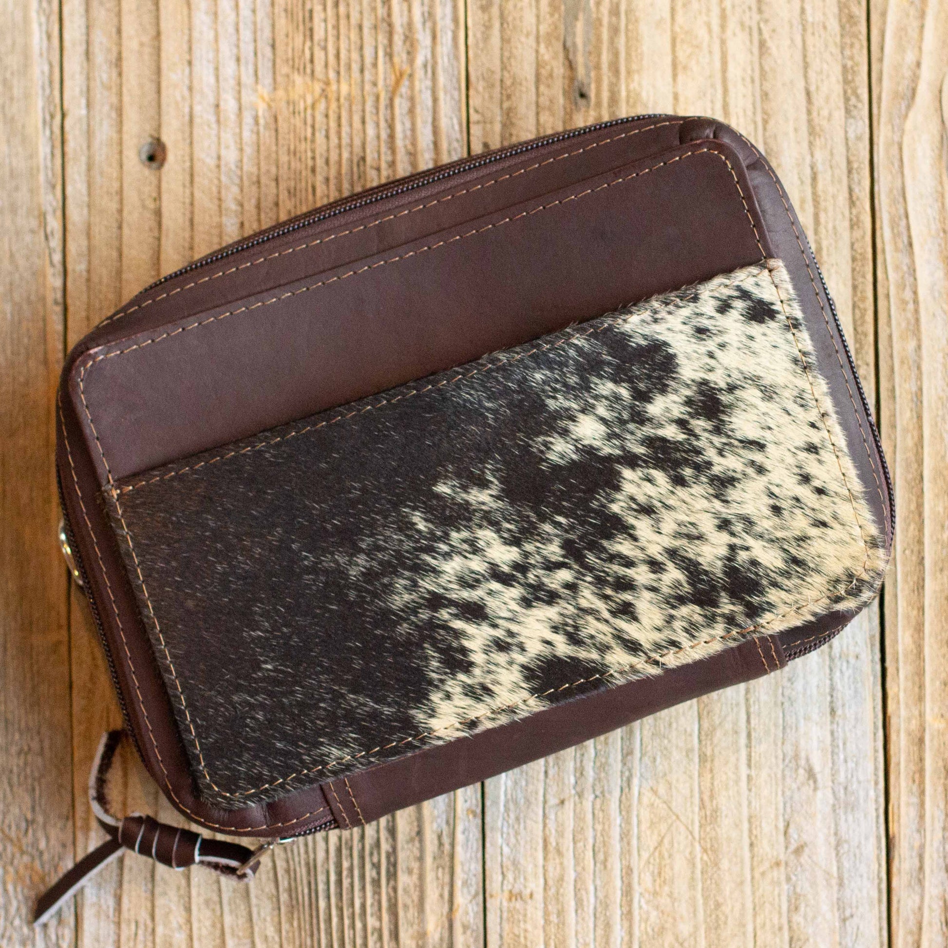 Crafted from high-quality leather with a striking cowhide accent on the front, the Crossbody Wallet offers a unique blend of modern design and timeless craftsmanship. Choose from four beautiful cowhide styles to match your personal taste. The wide YKK zipper opens ¾ of the way around the bag, making it easy to access everything inside.