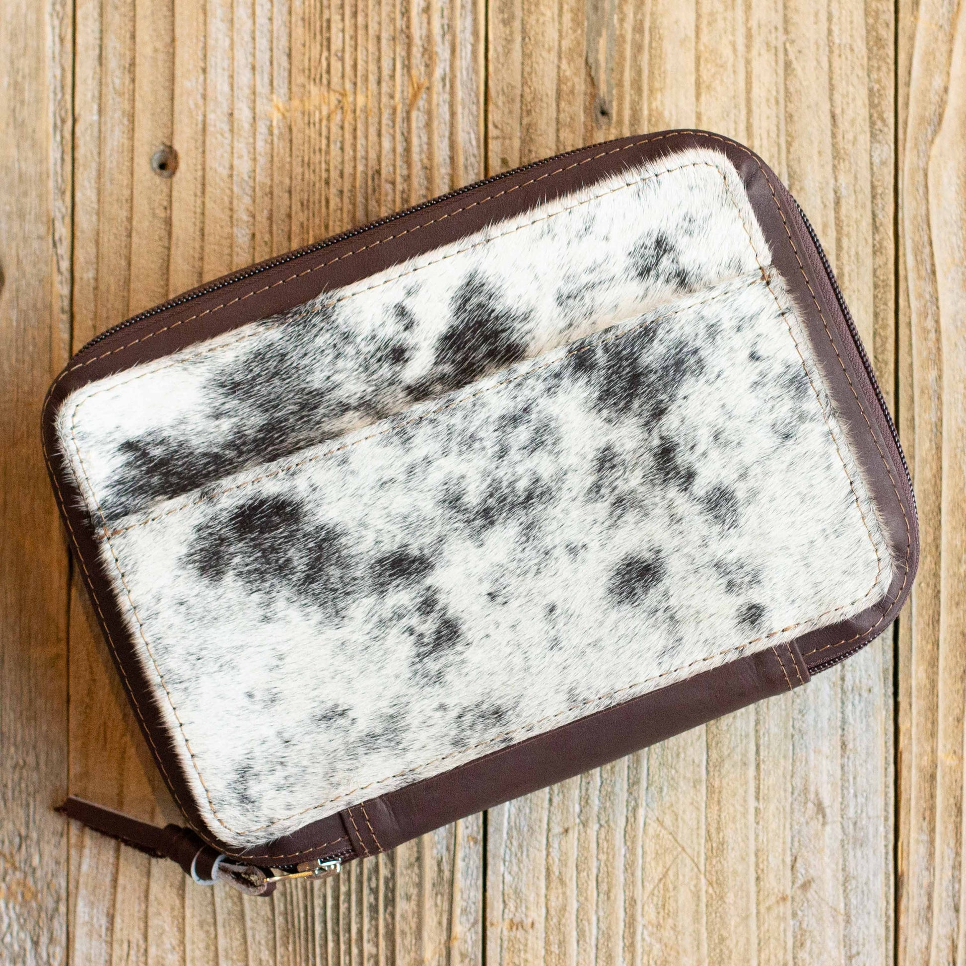Crafted from high-quality leather with a striking cowhide accent on the front, the Crossbody Wallet offers a unique blend of modern design and timeless craftsmanship. Choose from four beautiful cowhide styles to match your personal taste. The wide YKK zipper opens ¾ of the way around the bag, making it easy to access everything inside.