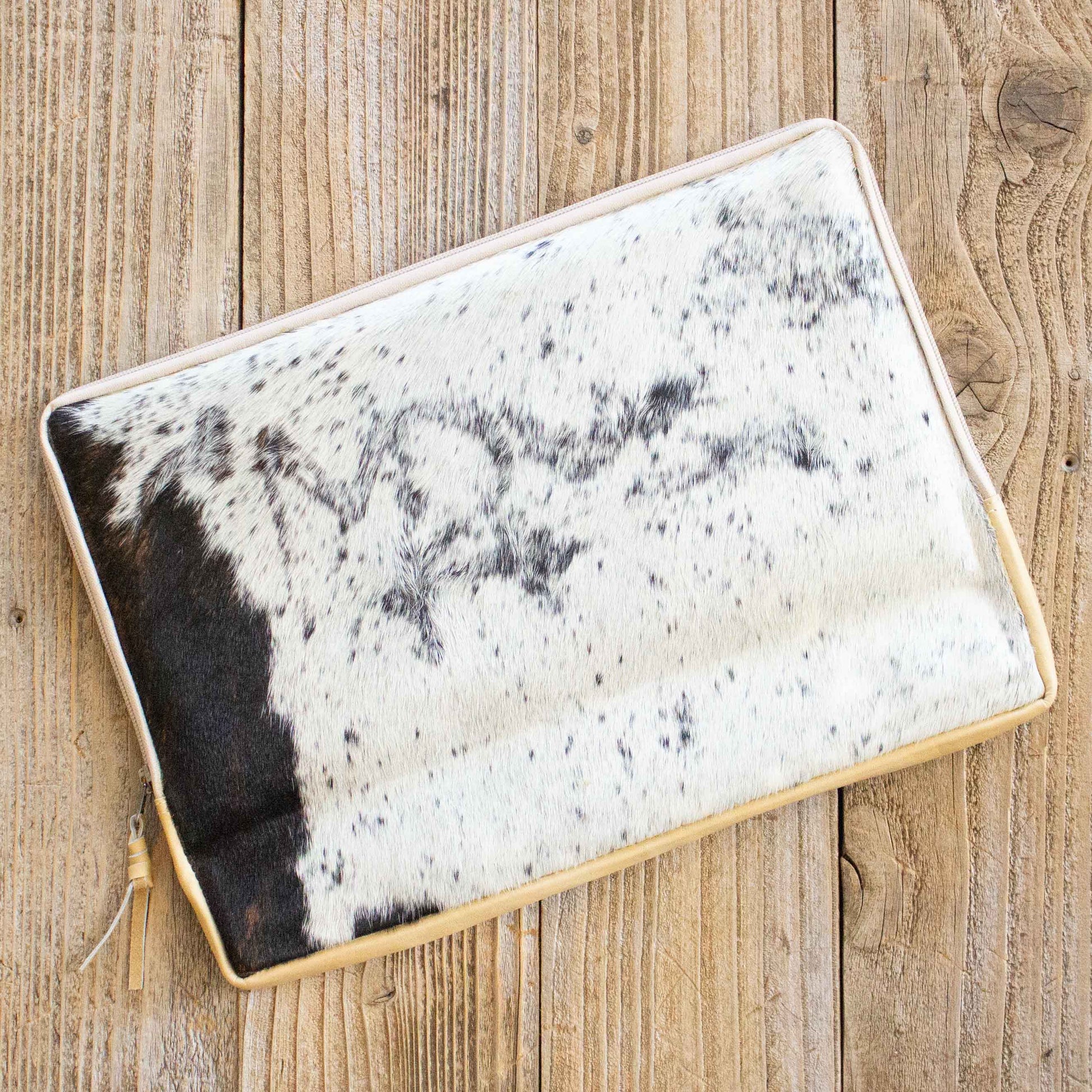 Upgrade your laptop game with the ultimate blend of style and protection. Our Limited Edition Hair-On Cowhide Laptop Sleeve is a one-of-a-kind piece, handcrafted with a luxurious cowhide front and sleek leather back. Each sleeve is unique—no two are alike—and individually photographed, so you know exactly which design is yours.