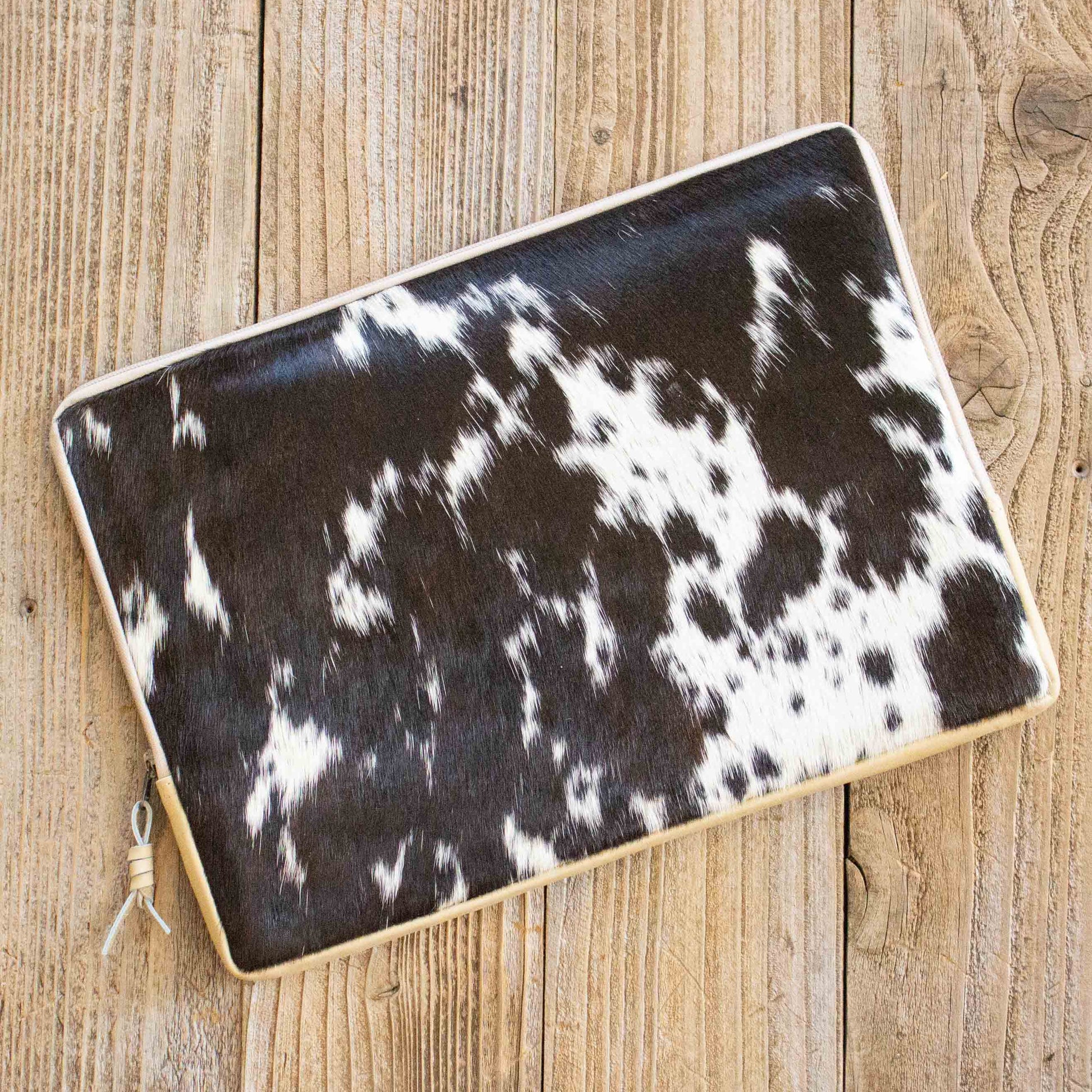 Upgrade your laptop game with the ultimate blend of style and protection. Our Limited Edition Hair-On Cowhide Laptop Sleeve is a one-of-a-kind piece, handcrafted with a luxurious cowhide front and sleek leather back. Each sleeve is unique—no two are alike—and individually photographed, so you know exactly which design is yours.