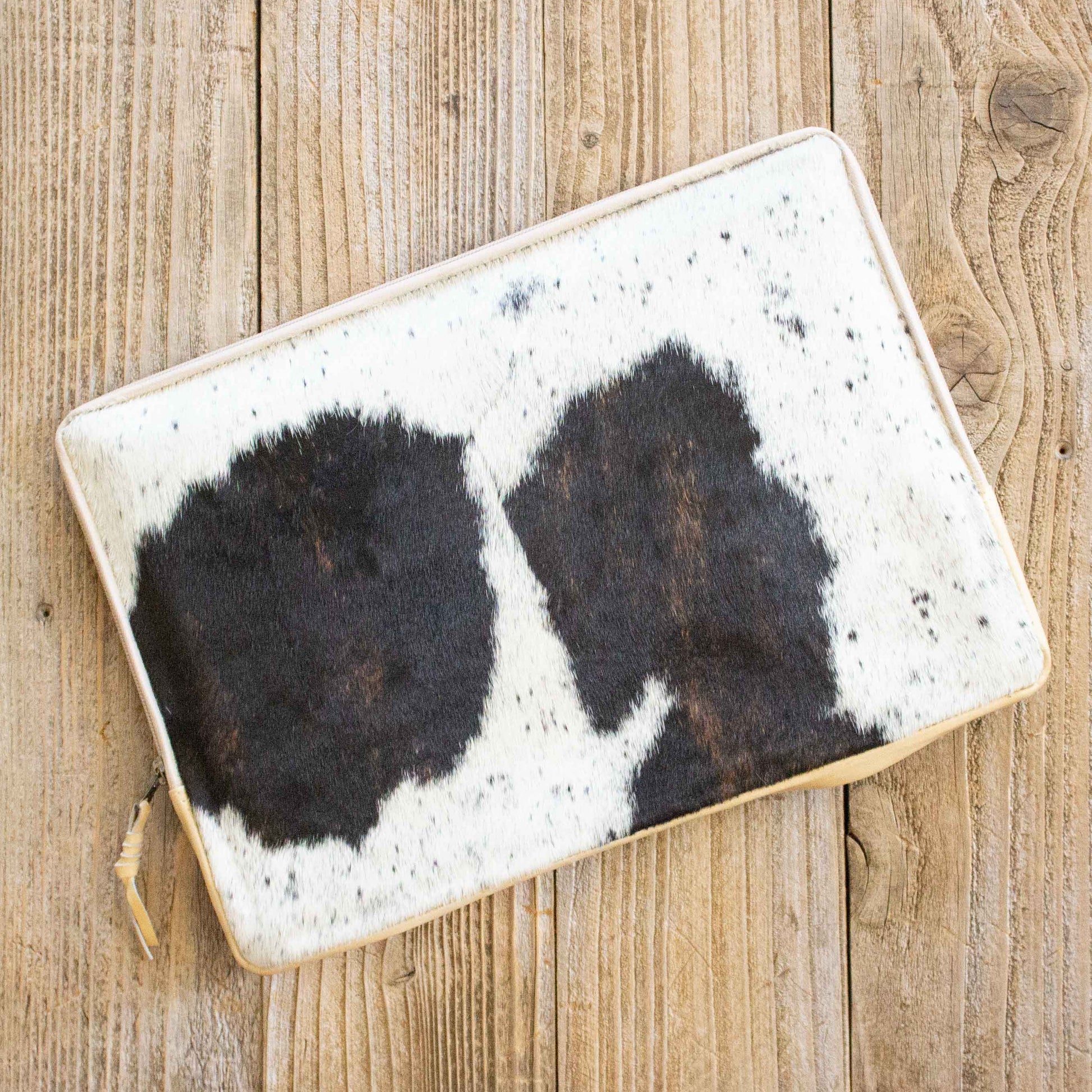 Upgrade your laptop game with the ultimate blend of style and protection. Our Limited Edition Hair-On Cowhide Laptop Sleeve is a one-of-a-kind piece, handcrafted with a luxurious cowhide front and sleek leather back. Each sleeve is unique—no two are alike—and individually photographed, so you know exactly which design is yours.
