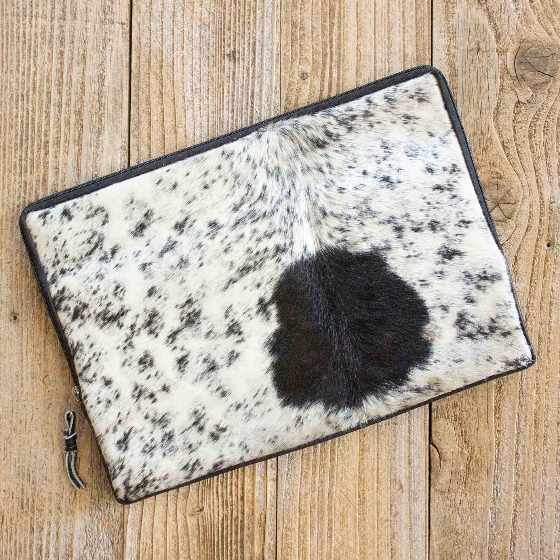 Upgrade your laptop game with the ultimate blend of style and protection. Our Limited Edition Hair-On Cowhide Laptop Sleeve is a one-of-a-kind piece, handcrafted with a luxurious cowhide front and sleek leather back. Each sleeve is unique—no two are alike—and individually photographed, so you know exactly which design is yours.