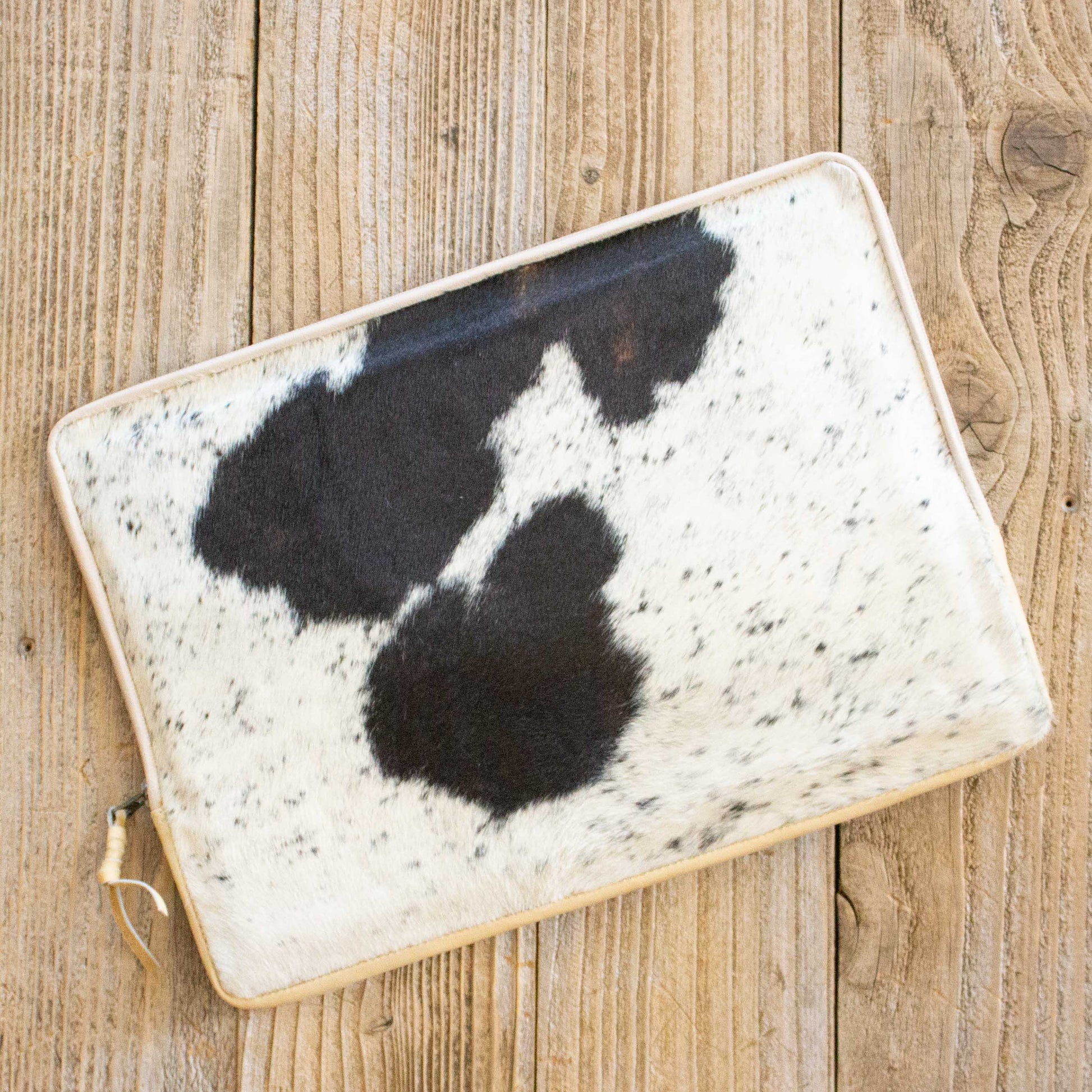 Upgrade your laptop game with the ultimate blend of style and protection. Our Limited Edition Hair-On Cowhide Laptop Sleeve is a one-of-a-kind piece, handcrafted with a luxurious cowhide front and sleek leather back. Each sleeve is unique—no two are alike—and individually photographed, so you know exactly which design is yours.