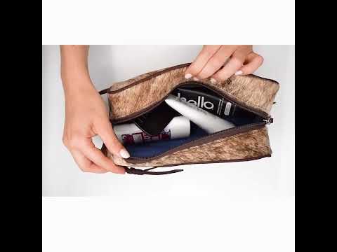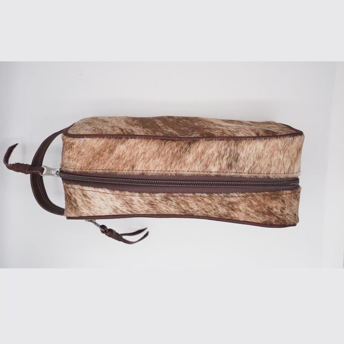 Go ahead and bring that full tube of toothpaste...you'll have plenty of room with our cowhide Toiletry Bag!