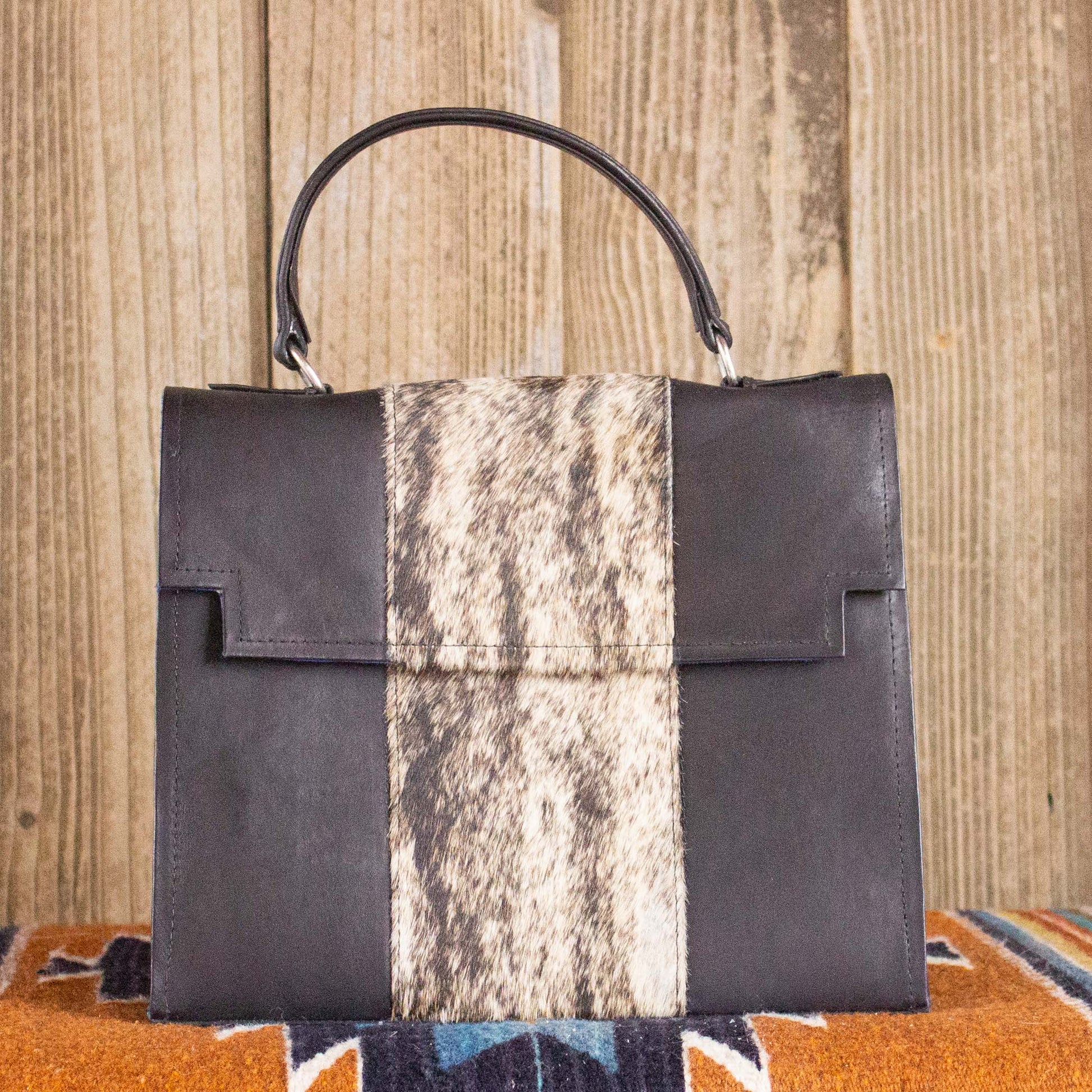 Crafted from premium leather with a distinctive vertical cowhide stripe on the front, the Vintage Purse has a refined yet bold look. Its structured shape, complete with a leather top handle, offers a classic silhouette, while the detachable crossbody strap provides hands-free versatility. For easy access to essentials, the back features a large sleeve pocket—perfect for keeping your phone or keys within reach.