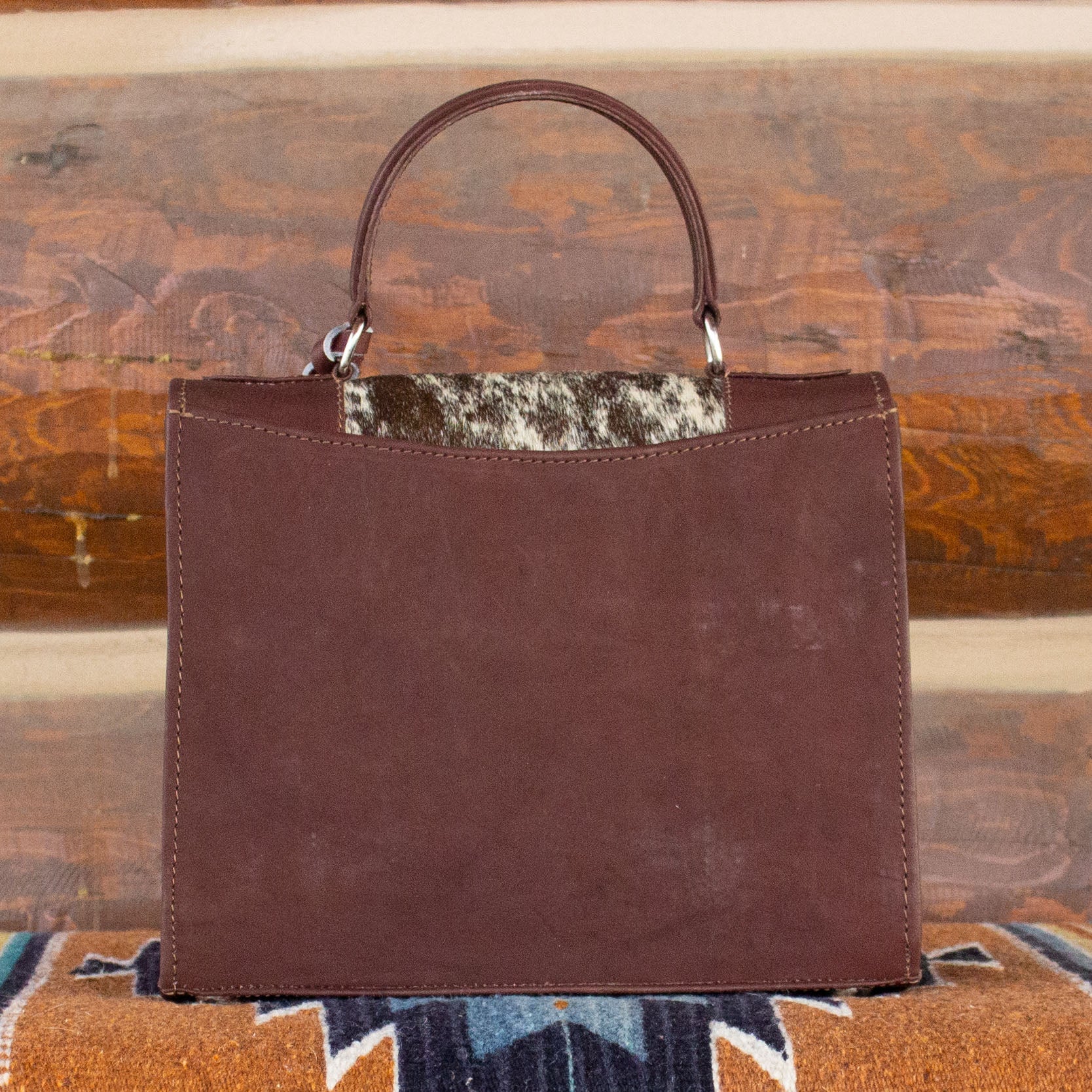 π A statement silhouette β structured, striking, and handcrafted with a bold cowhide stripe.