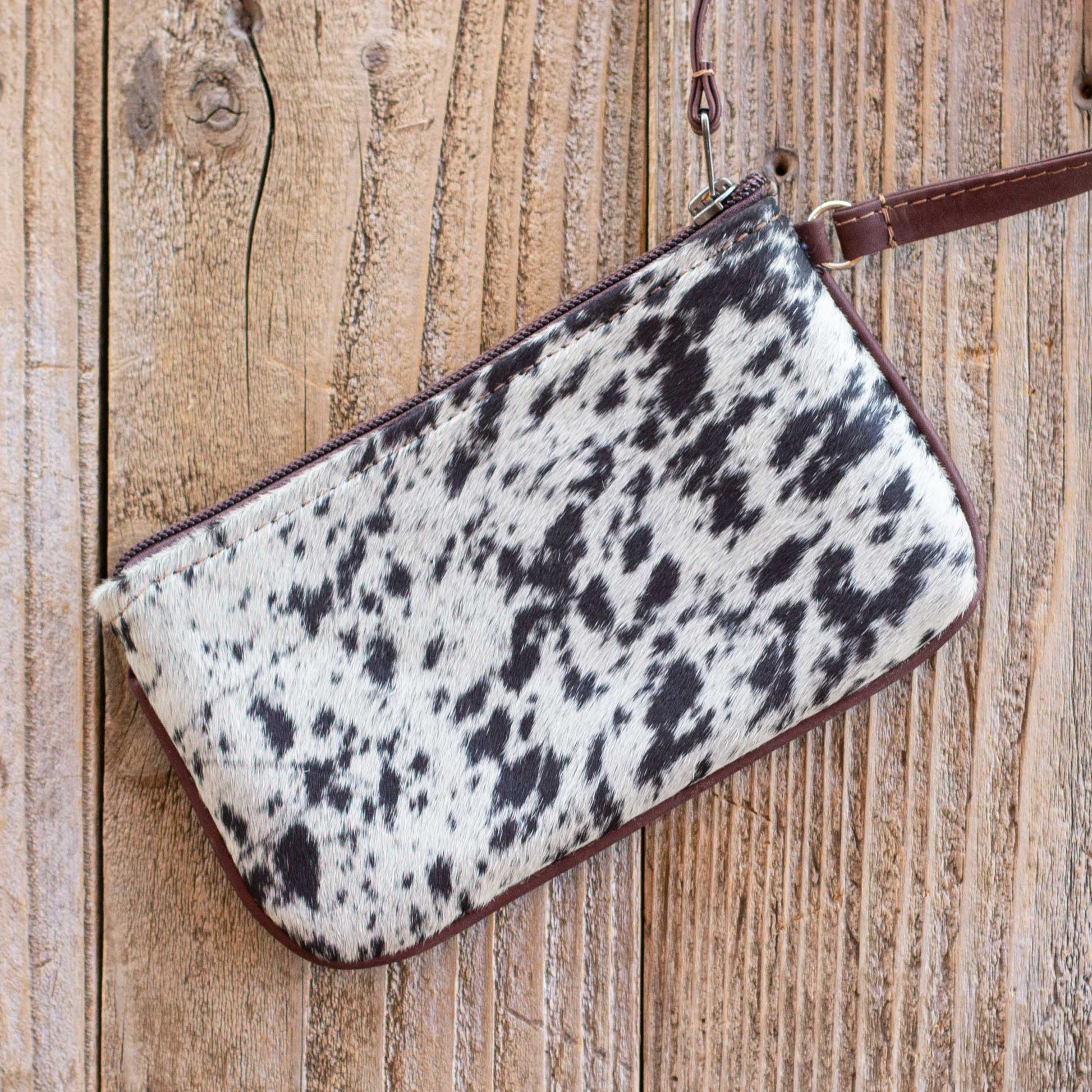 🤠 Stadium-approved Wristlet design with one of a kind cowhide character.Â